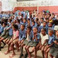 Eltern, künftige Lehrer, Schüler der Ombili-Grundschule und Gemeindemitglieder nahmen an der Veranstaltung teil. Auch wurde gesungen und getanzt.