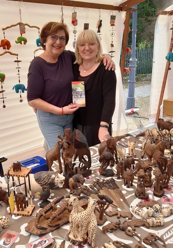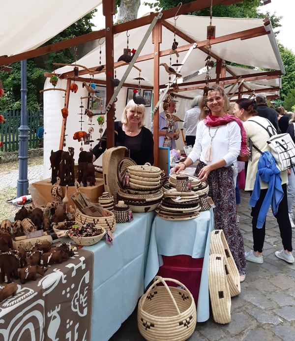 Nach vielen Monaten Corona bedingter Absagen konnten wir endlich wieder in der Öffentlichkeit Kunsthandwerk der San von Ombili zum Kauf anbieten.