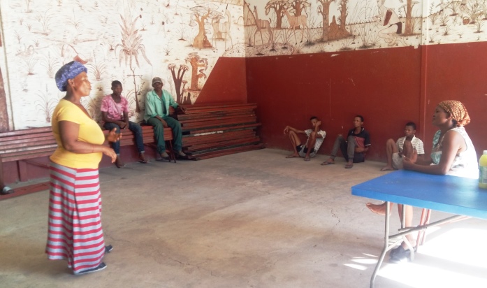 Wichtig ist vor allem die Stärkung und der Zusammenhalt der Gemeinde in dieser für alle sehr schweren Zeit, besonders aber für die San hier mitten im Busch. Der Gemeindechor und die Traditionsgruppe spielen dabei eine wichtige Rolle.