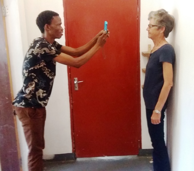 Die Ausgabe von Ombili-IDs, nun auch für Management und Vorstand, wird verstärkt (Martin Aroma fertigt dafür Bilder an, hier mit Bets van der Merwe).