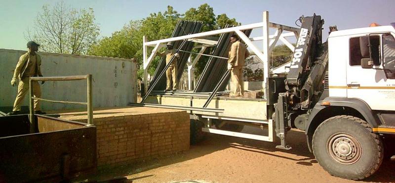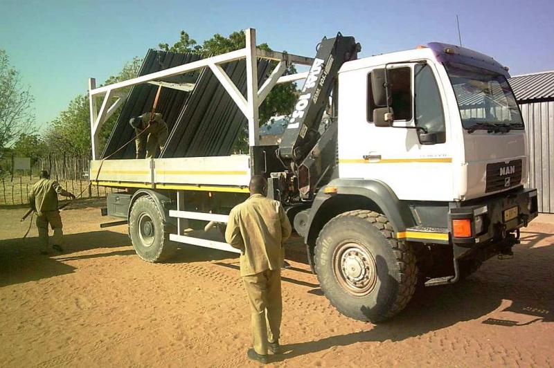 Inzwischen ist das erste Material für die Photovoltaik-Anlage bei Ombili angeliefert worden und der Aufbau kann nun auf dem Gelände des ehemaligen Schulgartens beginnen.