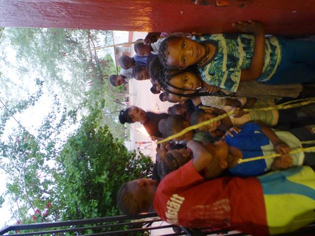 Für die Kinder läuft jetzt in der Ferienzeit ein von den Freiwilligen gemeinsam mit den Kindergärtnerinnen zusammengestelltes Beschäftigungsprogramm mit Musik, Sport, Malen, Filmvorführungen und als besonderes Ereignis Stockbrot am Abend.