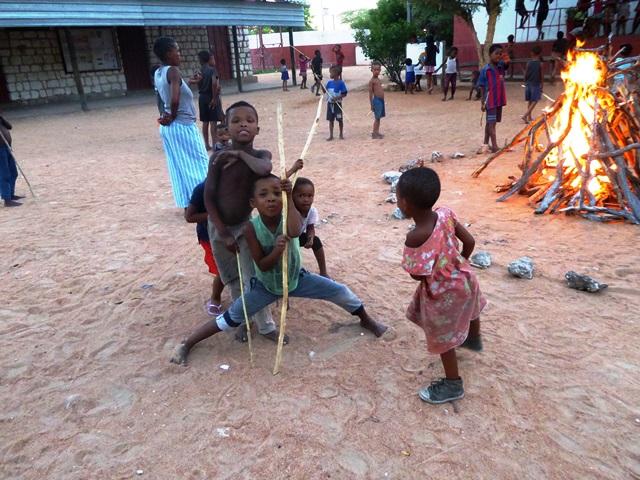 Heute am späten Vormittag kämpften die Frauen- und Mädchenmannschaft um den Sieg auf dem Fußballplatz. Bei Temperaturen bis 38 Grad ist die Kondition der Spielerinnen, die bis auf die Torhüterin barfuß auf dem internationalen Maßen entsprechendem Spielfeld agierten, absolut bewundernswert. Zwischenzeitlich wurden einige Spielerinnen der Frauenmannschaft ausgewechselt, um ihre Säuglinge am Spielfeldrand zu stillen. Letztendlich siegte die Mädchenmannschaft" Ombili Beauties" nach hartem Kampf mit 3:1.