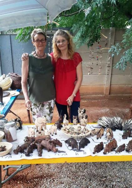 Am 2. Adventswochenende verkaufen das neue Management-Mitglied Leone du Plessis und Ria Struwig, Ehefrau des Ombili-Vorstandsmitgliedes Andrè Stuwig in Tsumeb Ombili-Kunsthandwerk. Am Samstag trübte der für das Land so wichtige Regen ein wenig die Verkaufsfreude.